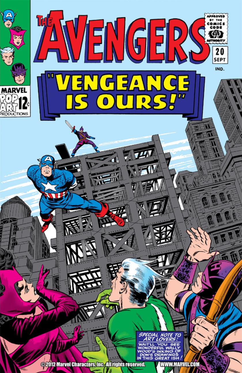 Picking up from last issue, Captain America plummets to his death. Thankfully, Cap’s teammates aren’t so keen on his imminent death and Quicksilver, with the aid of a hastily acquired television antenna, manages to create an updraft which slows Cap’s decent. Hawkeye and Scarlet Witch join in the rescue effort by freeing Cap from his bondage and providing a beam for him to land on. Now out of immediate danger, Quicksilver provides Cap with his shield and the mighty Avengers swing into action to bring Swordsman in for his crimes. Just as the team manages to corner him, Swordsman begins to disappear right before their eyes. More astonishingly it soon becomes clear that even Swordsman has no idea what is happening to him. Before they can do anything, Swordsman is gone and the blame begins to fly among the Avengers. Hawkeye is certain that had Cap not told the team to hold back from attacking then Swordsman would not have evaded capture. As the accusations spread, tempers flare hotter and hotter.