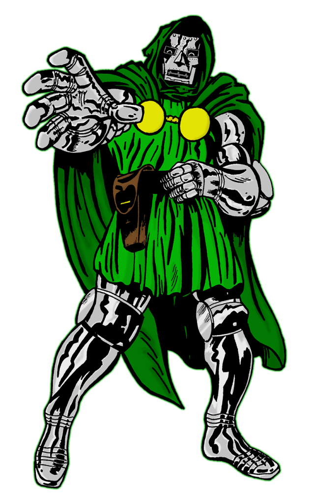 Victor Von Doom, the supreme nemesis of the Fantastic Four is an evil genius of unparalleled cunning. Raised in Latveria by his Romani family, Doom drew the attention of the dean of Empire State college and was invited to attend. While there he first met Reed Richards, the future leader of the Fantastic Four. Doom ignored Richards’ warnings that his calculations where off and when he attempted the associated experiment, the resulting explosion disfigured Doom’s face. Ever since, Doom has thirsted for vengeance against Richards, and by association, the Fantastic Four. Doom has tried, repeatedly and unsuccessfully, to bring his despised foes to their destruction.